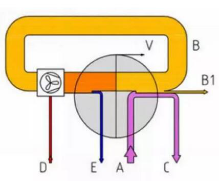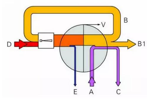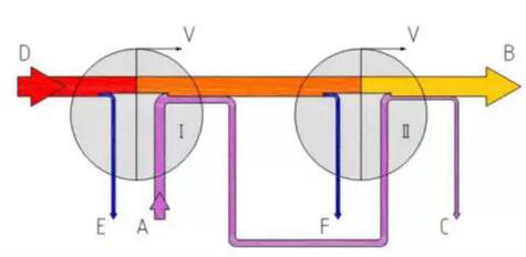 A product B two steam B1 residual steam C concentrated liquid D steam E steam condensing water V heat loss